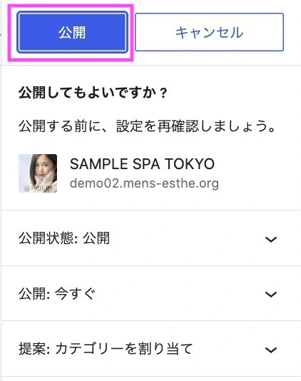 完了したら、右上の【公開】をクリックします。
