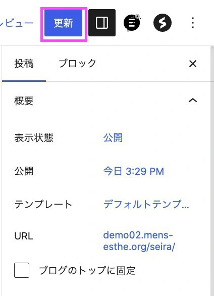 【更新】をクリックします。