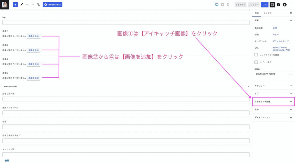 ※必ず【アイキャッチ画像を設定】に画像を入れてください。
